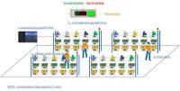 An automated guided vehicle (AGV), different from an autonomous mobile robot (AMR), is a portable robot that follows along marked long lines or wires on the floor, or uses radio waves, vision cameras, magnets, or lasers for navigation. They are most often used in industrial applications to transport heavy materials around a large industrial building, such as a factory or warehouse. Application of the automatic guided vehicle broadened during the late 20th century. |